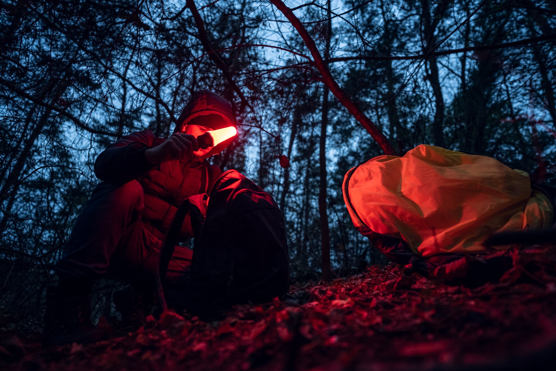 Une lampe de camping : le cône en silicone blanc inclus permet l'émission d'une lumière diffuse dans la tente de camping. Les lumières rouges et vertes accroissent les possibilités d'utilisation dans la tente et autour du terrain de camping. Peut être installée à la verticale.
