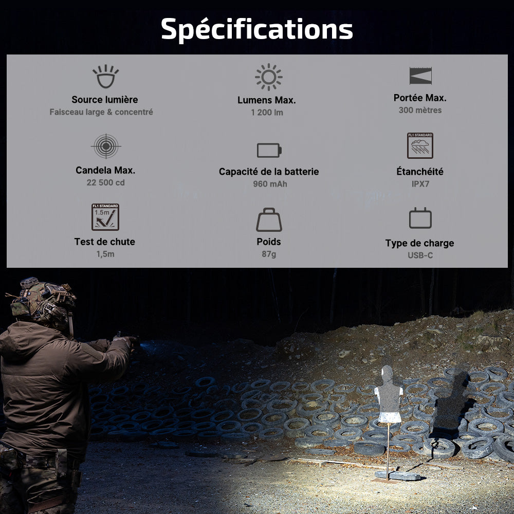 Olight PL X | Lampe Tactique Rechargeable USB-C 1200 Lumens à Double Faisceau