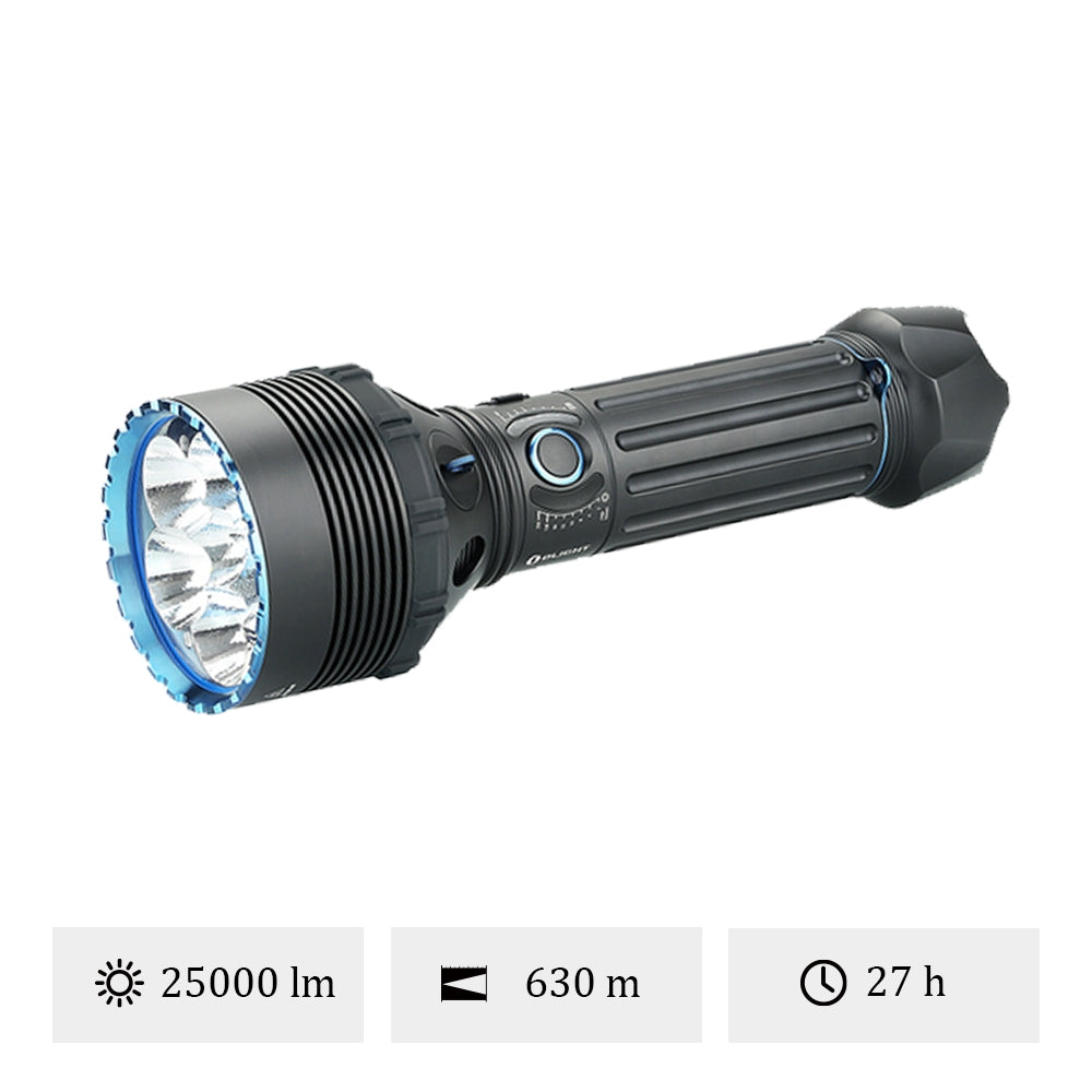 Ultra lumineuse : Le niveau de luminosité le plus élevé jamais produit par Olight, atteignant une puissance maximale de 25 000 lumens.