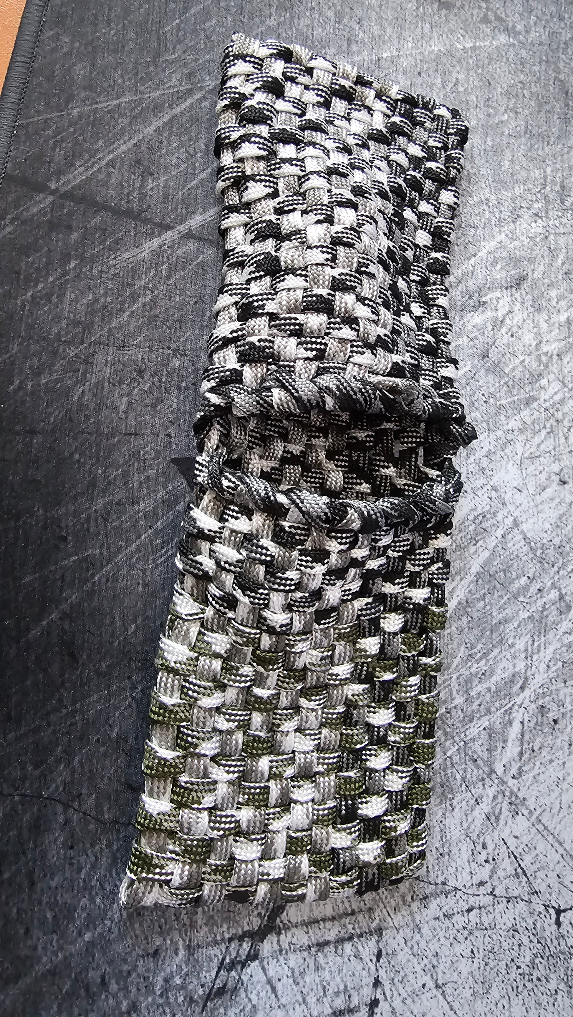 Tressage en type paracorde (non militaire) pour un look outdoor et artisanal.